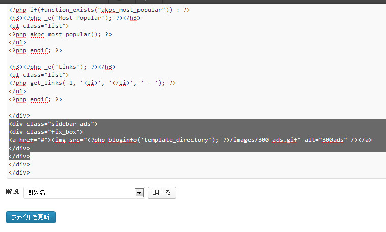 外観→テーマ編集→サイドバー (sidebar.php)より、